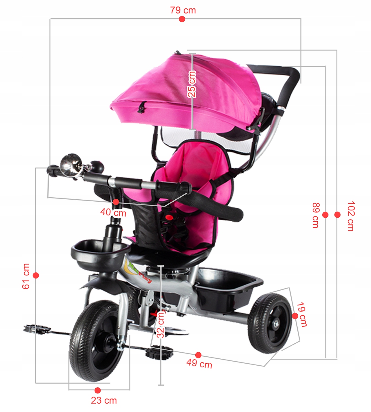 много -счетный трехсторонний велосипед с 3IN1 Roof Pink h1>