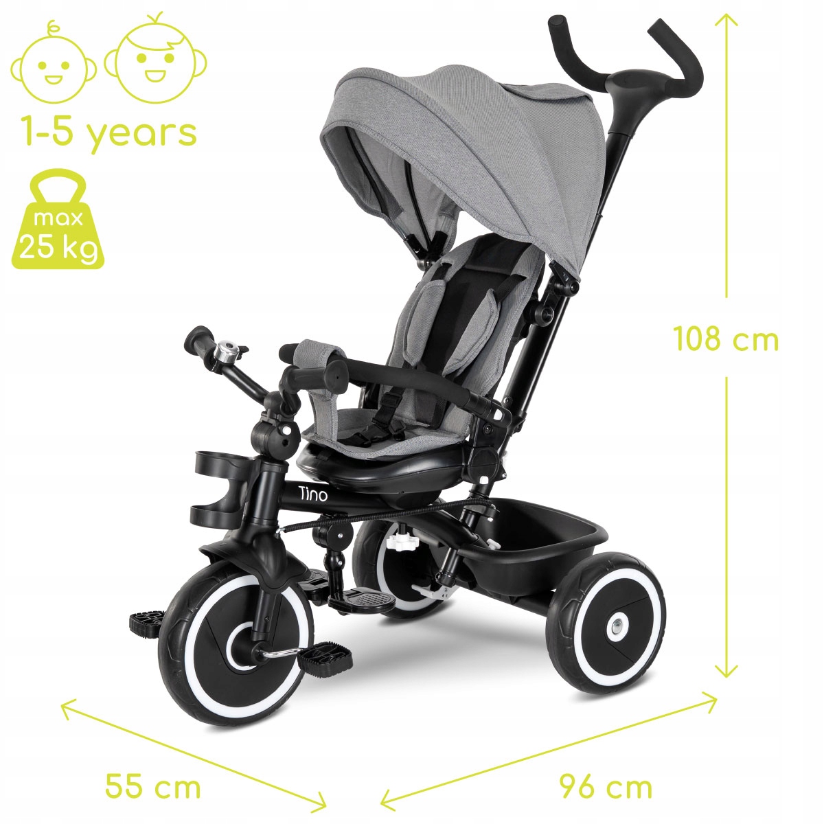 Lorelli Tino 360 -это функциональный трехсторонний велосипед, который благодаря 360 ° горячего сиденья и широкой корректировке, идеально адаптируется к потребностям ребенка с 9 месяцев до 5 лет. 5in1 Bike - это идеальная альтернатива коляске для ребенка, который может сидеть самостоятельно.