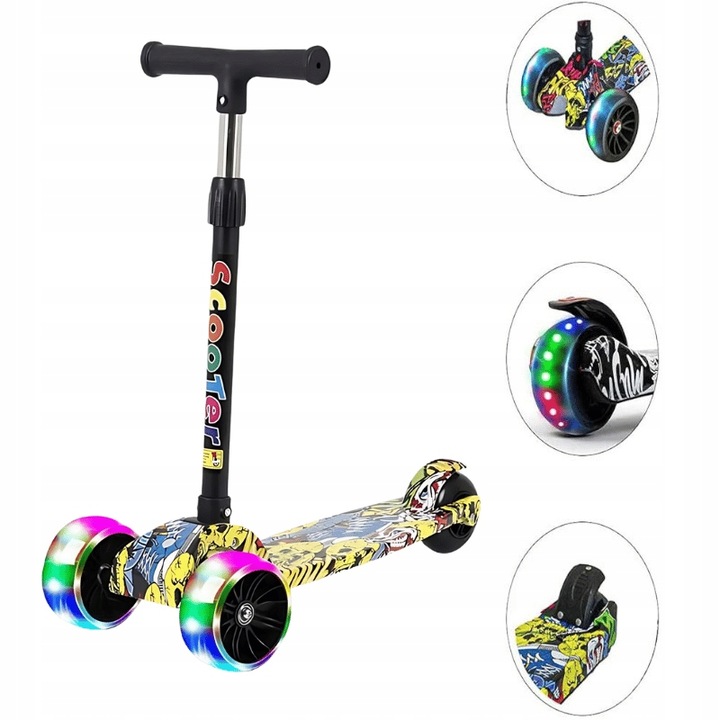✅ световой и гибкой конструкции - упругая конструкция скутера обеспечивает лучшую амортизацию в случае неравномерности. Резиновые шины и платформа, изготовленная из специального гибкого материала, поглощают поверхностную вибрацию во время движения по неровной местности, и, следовательно, не переносит их в молодое тело. Скутер - это свет, что облегчает его управление, а также влияет на простоту его передачи