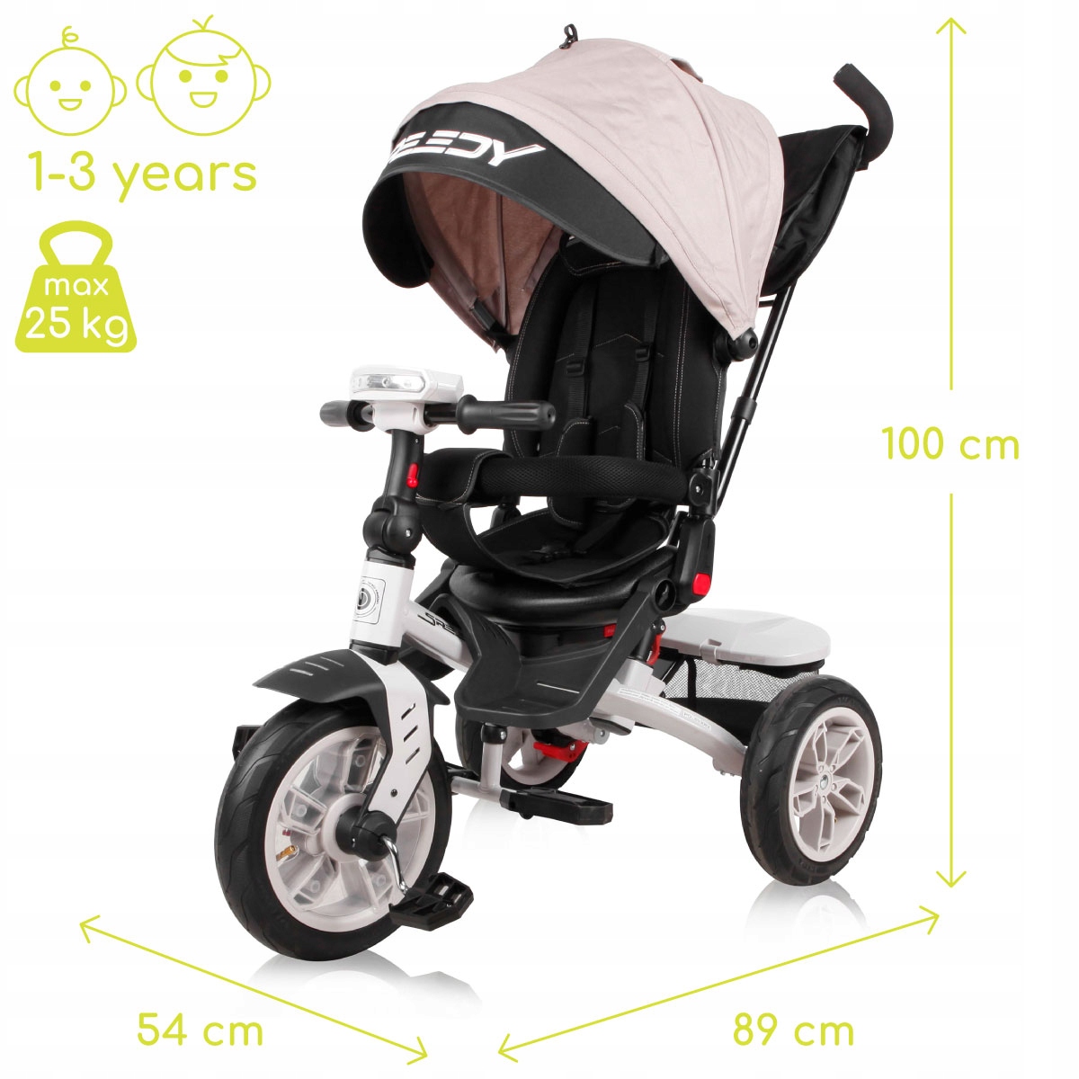 Lorelli Speepy Air -это универсальный трехлетний велосипед, который приспосабливается к потребностям вашего ребенка с 12 месяцев до 3 лет. Благодаря возможностям конфигурации он выступает в качестве коляски, и со временем становится независимым велосипедным , поддерживая моторную разработку малыша.