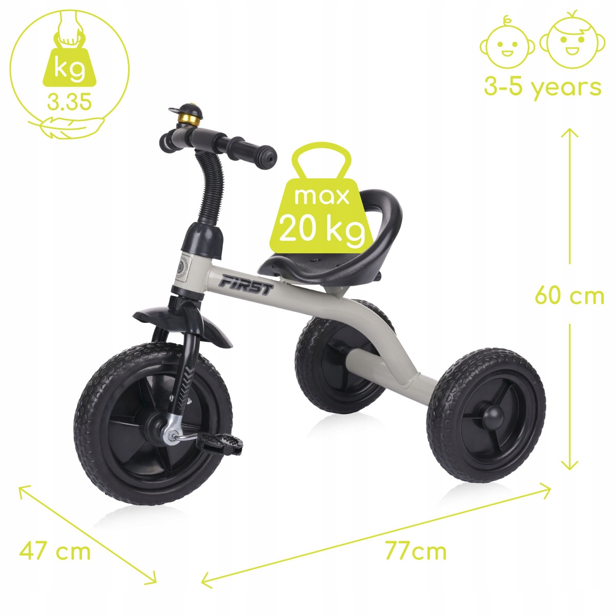 Три -шаловый велосипед для легкого и маневренного ребенка Lorelli First Gift Grey Grey