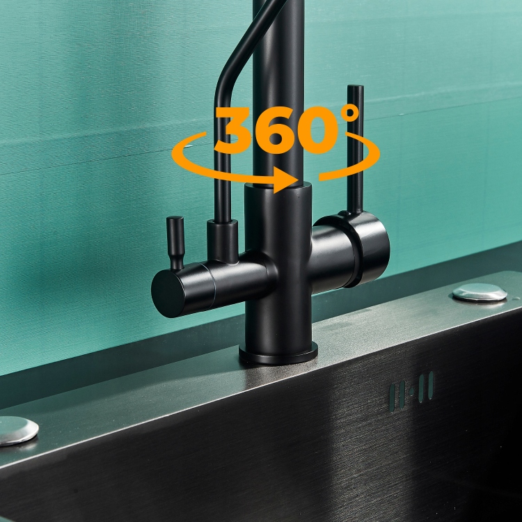 Трехночечная кухонная батарея с гибким носиком черного коврика h1>
