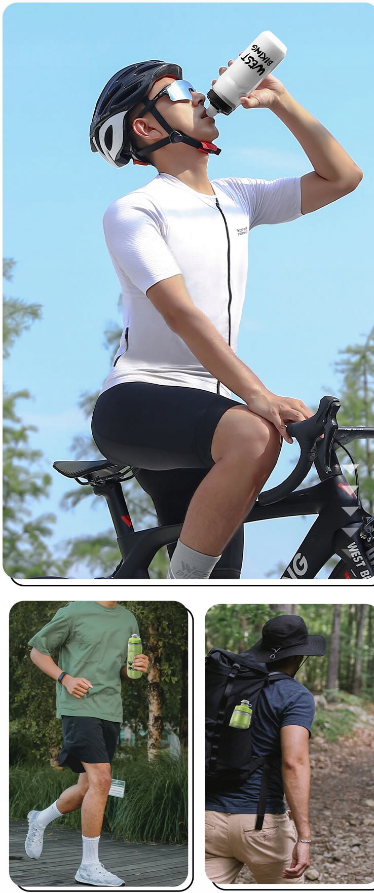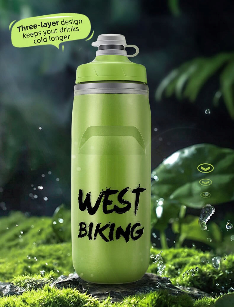 Эта бутылка для велосипедной воды имеет уникальную трехслойную теплоизоляционную структуру , которая поддерживает напитки на холоде в течение многих часов. Кроме того, структура мундштука предотвращает протекание воды во время вращения. Нейтральный запах и прост в чистке, идеально подходит для велосипедных и приключений для скалолазания.