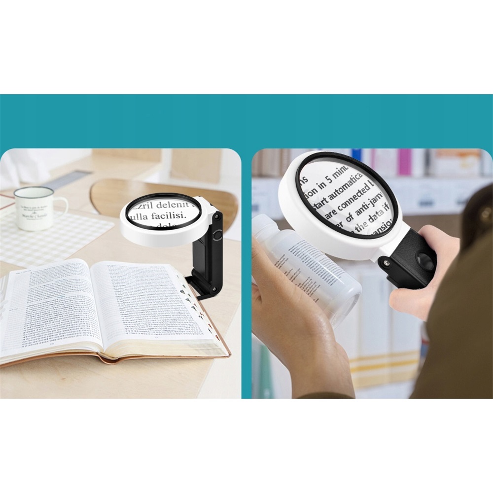 Увеличение чтения при освещении для пожилых людей оснащены 33 частями светодиодных фонарей, выражающих энергию, увеличительное стекло с освещением и подставкой разработаны с модами холодного и теплого освещения, которые могут быть вручную переключаться между интенсивностью света. -Сысленность / короткая, пожилые люди, которые должны иметь ясное видение или визуально нарушение.