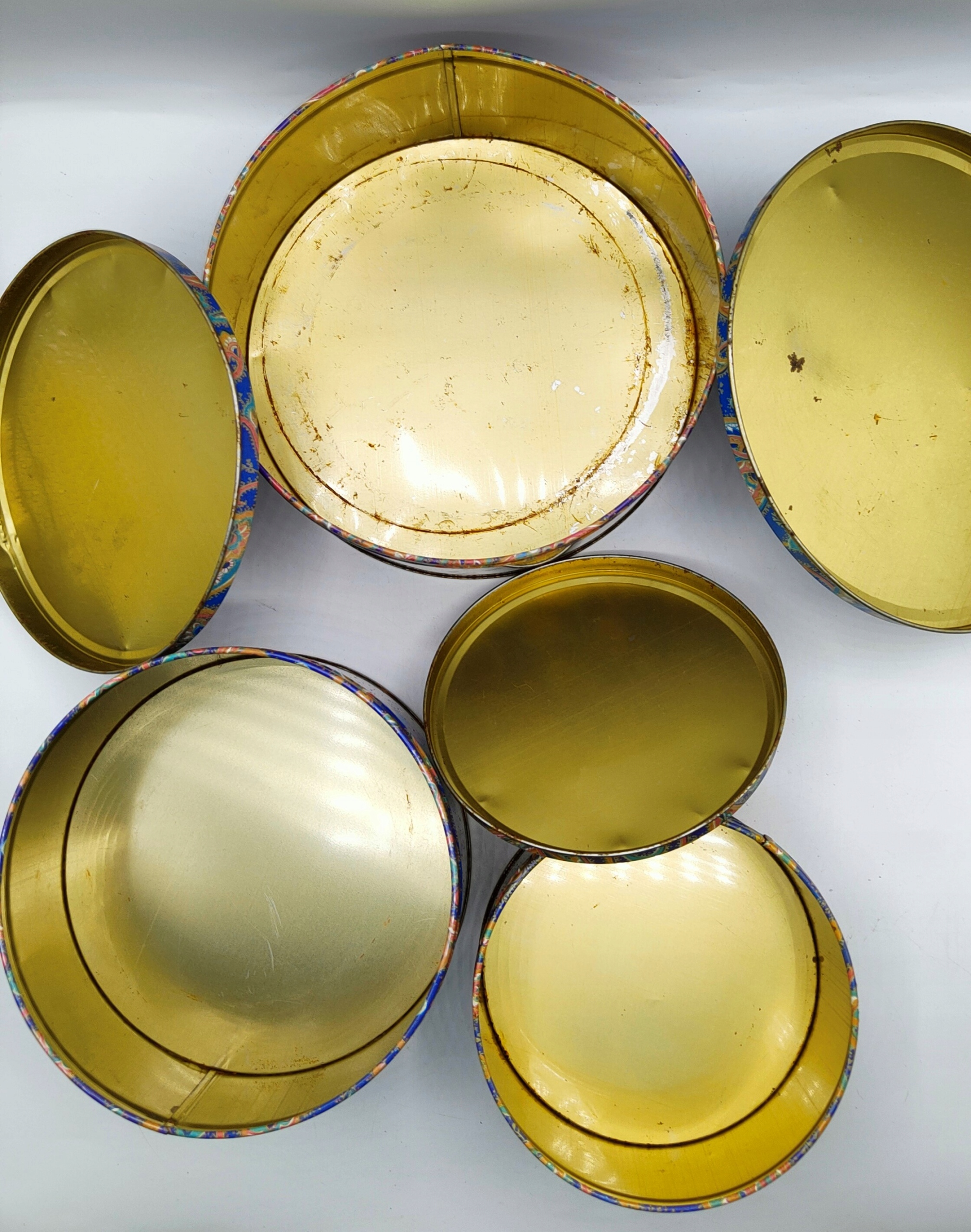 - это винтажные вещи и вы можете видите на них царапины, вмятины и потускнение в некоторых местах, коррозия, возникшая с возрастом при нормальном использовании, на мой взгляд это только добавляет им очарования - банки явно функциональные,