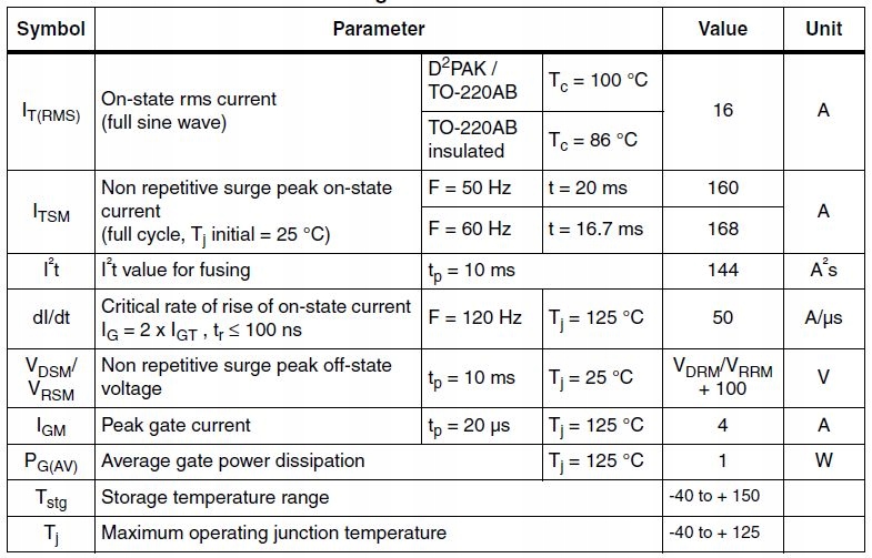 Triak BTA16 600 16A 600V 25 мА до 220 BTA16-600C STM