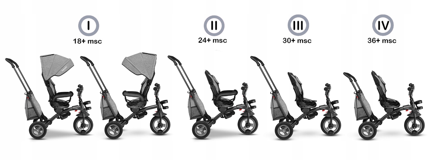 Небольшой путешественник может делать все больше и больше. Сиденье монтируется только спереди, а подставка для ног и повязки становятся ненужными.