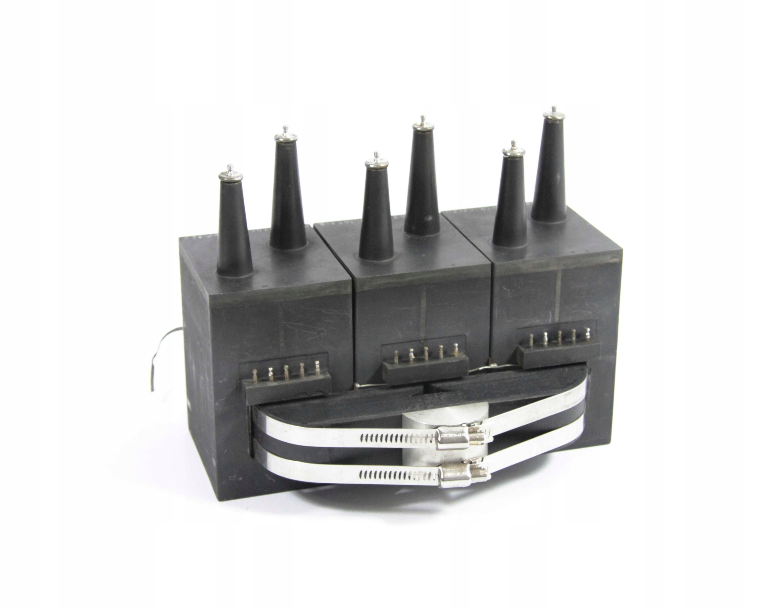 Трансформатор представляет собой сухой, герметичный вариант, т.е. каждая обмотка пропитана и заключен в смоляной куб.