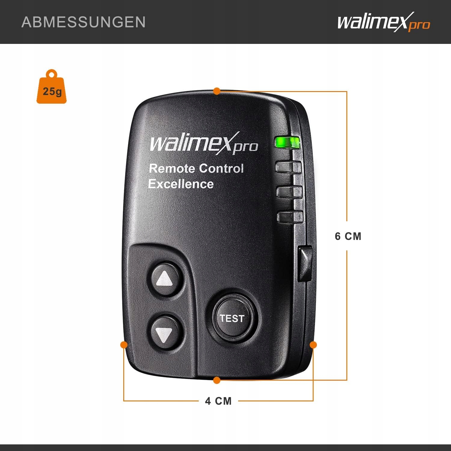 16-канальный радиотриггер для ламп-вспышек Walimex Pro VE и VC Excellence, Walimex Pro Newcomer обеспечивает удобное беспроводное управление студийной лампой на расстоянии до 30 метров. Правильный приемник для этой серии вспышек уже встроен во вспышку. С помощью триггера вы можете выполнить все настройки, такие как пилотный свет или мощность вспышки, чтобы обеспечить комфортную работу. Это делает триггер особенно практичным при использовании систем потолочных направляющих. Вы можете настроить и контролировать до четырех групп. Вспышку можно активировать центральным контактом.