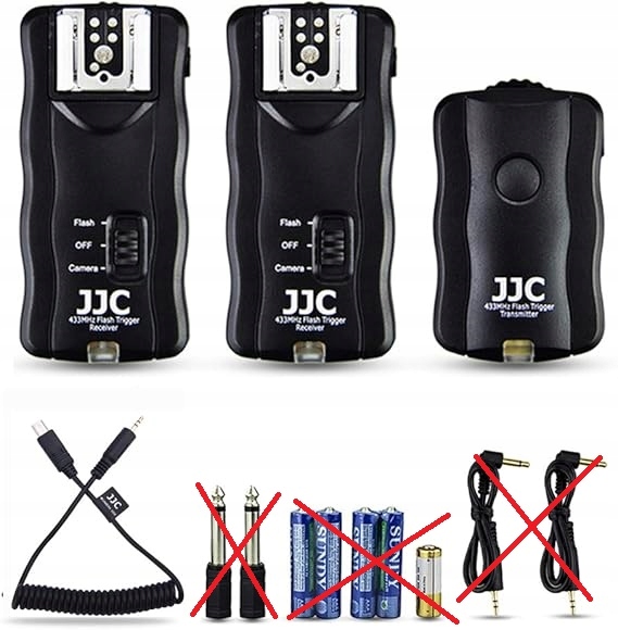 Передатчик JF-U — 1 шт. Приемник 1JF-U — 2 шт. Кабель спуска затвора — 1 шт.