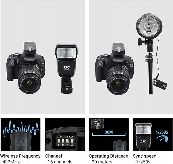 - Рабочее расстояние до 30 метров, 16 каналов на выбор, максимальная скорость синхронизации вспышки — 1/250 секунды.