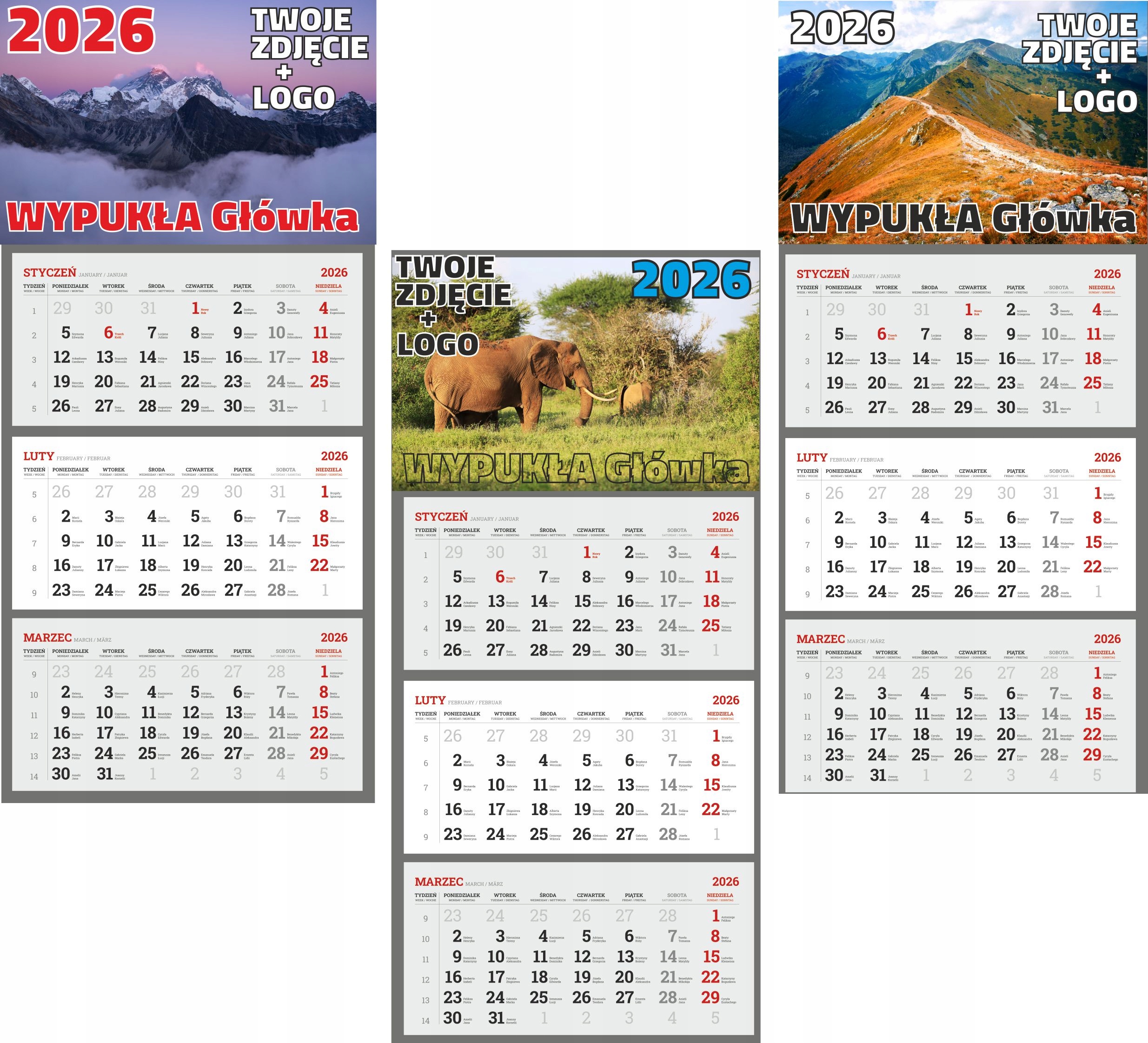 ТРІЙЧАСТИЙ календар 2026 з ОПУКЛОЮ головкою ЛОГОТИПУ З ПРИНТОМ - 10 шт