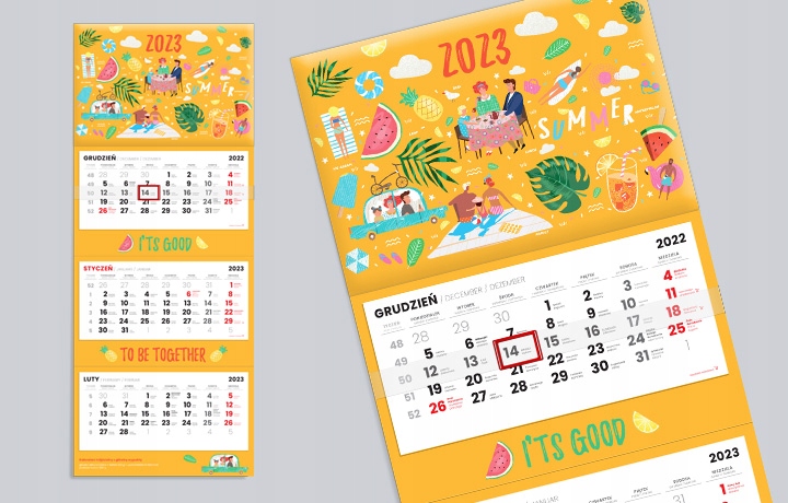 - 3 календаря на 12 месяцев, напечатаны на офсетной бумаге плотностью 90 г. черного и красного цвета.