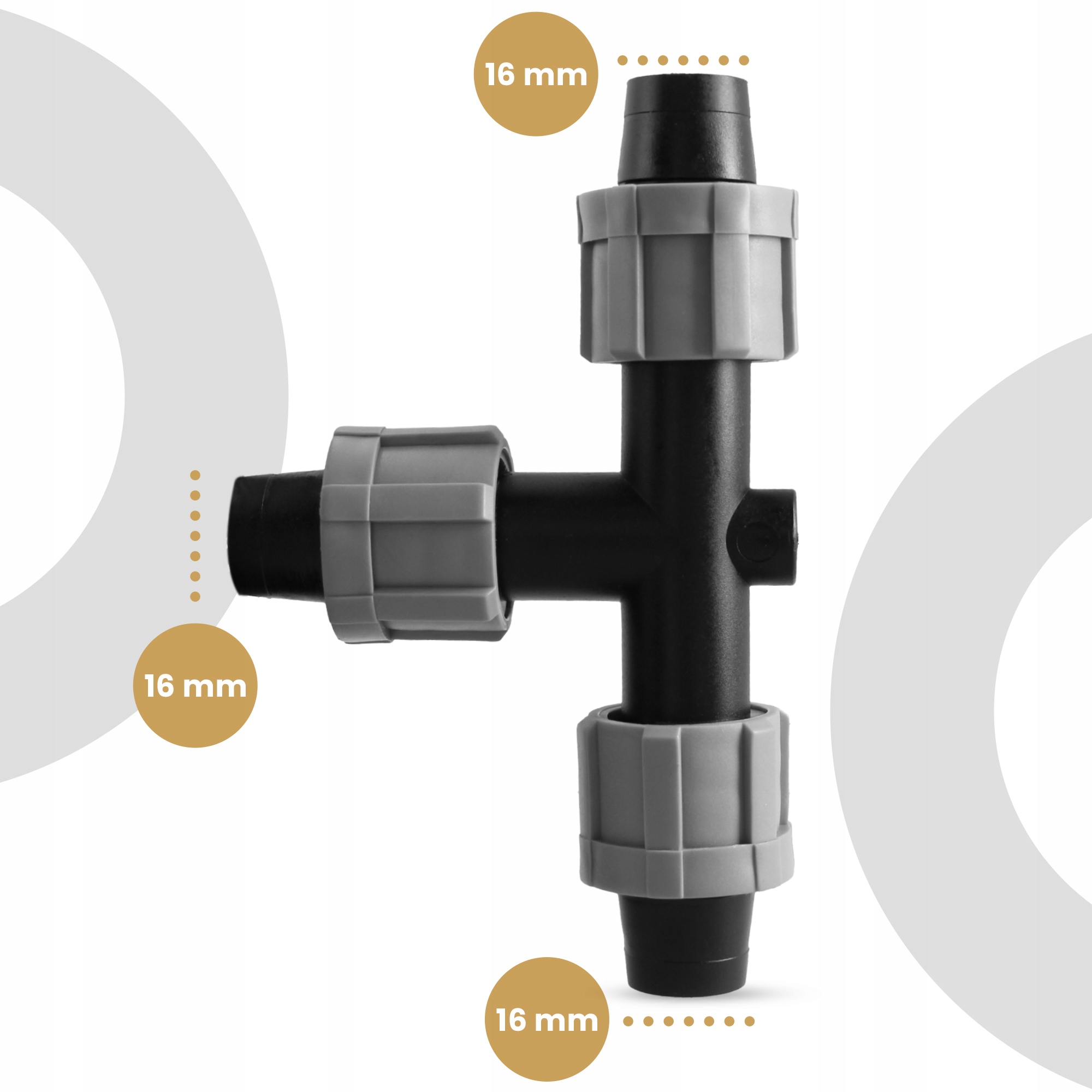 ТРІЙНИК 16x16x16 мм КАПЕЛЬНИЦЯ СТРІЧКА З'ЄДНАННЯ З'ЄДНАННЯ ПОЛИВНИЙ ШЛАНГ ПРОБКА