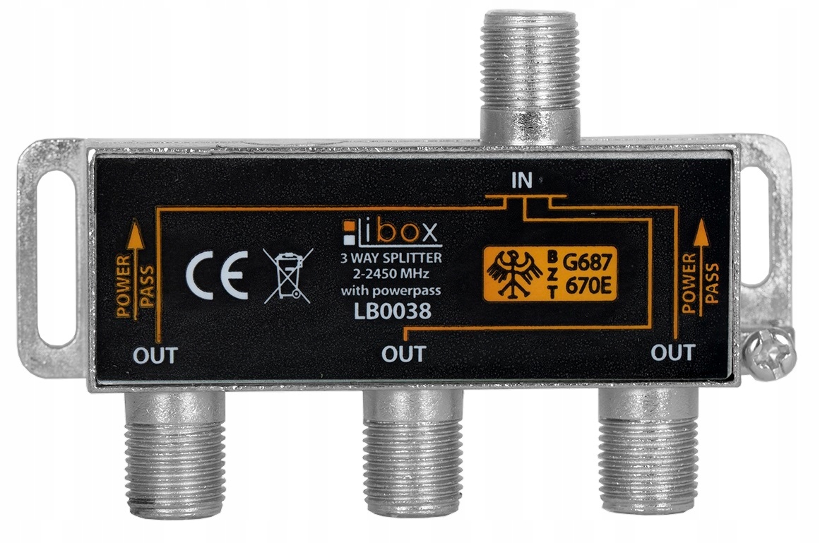 Очень качественный разветвитель от Libox, позволяющий разделить сигнал в диапазоне от 5 до 2400 МГц на два отдельных сигнала. Применяется в аналоговом и цифровом DVB-T2 эфирном и кабельном телевидении.