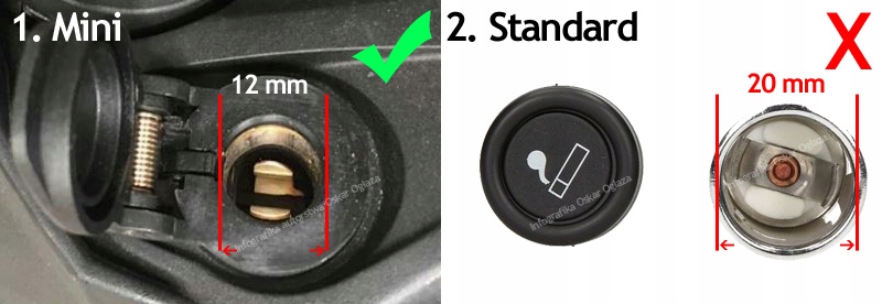 Перед покупкой обязательно проверьте, к какому типу - ширине гнезда прикуривателя вы будете подключать устройство с вилкой прикуривателя.