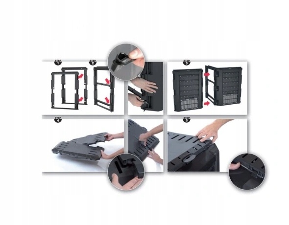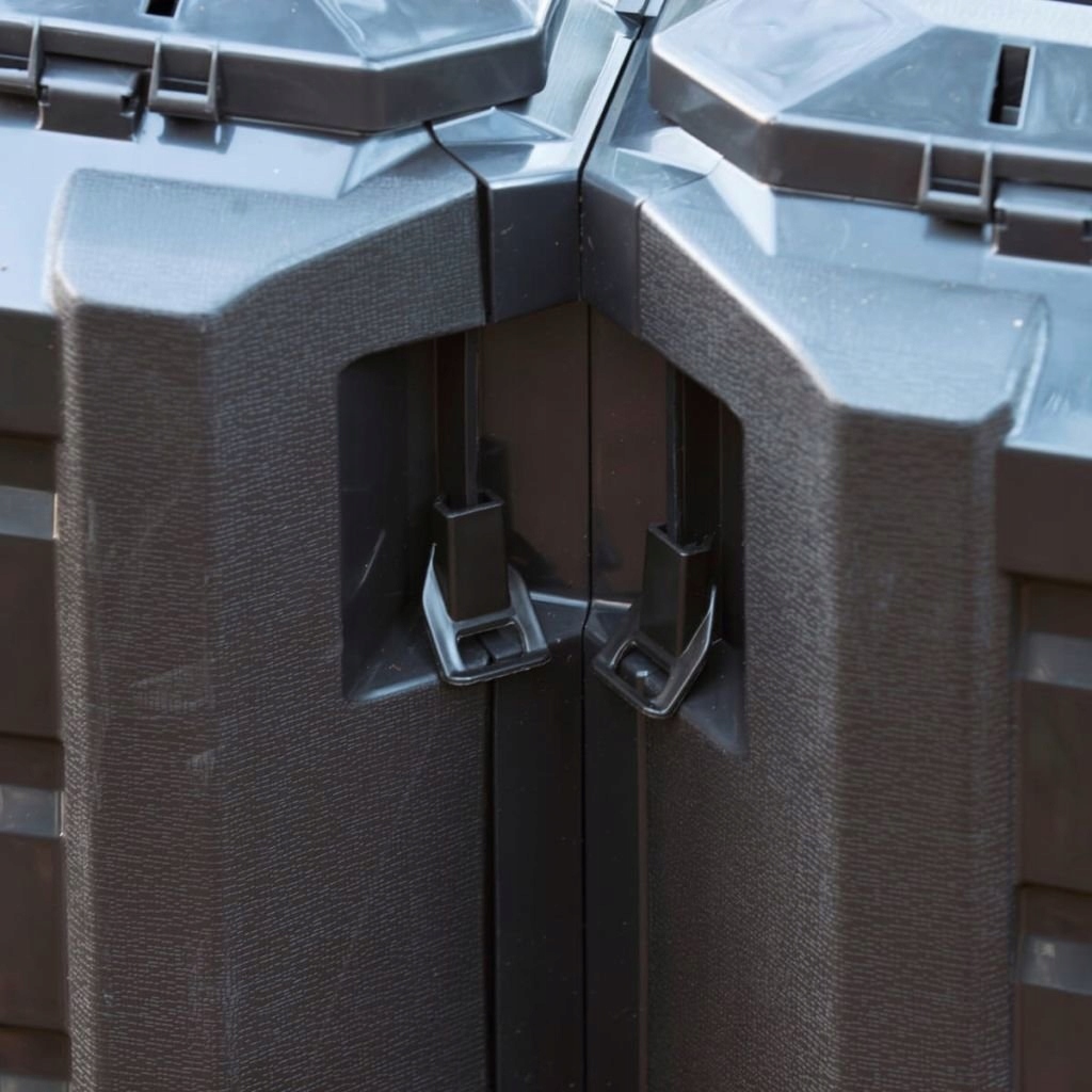 ⚠️ Компостер самосборный. Зажимы, фиксирующие компостер, вставляются в крючки в нижней части крышки компостера для хранения и транспортировки. Для установки не требуются специальные инструменты.