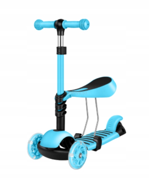 ТРЕХКОЛЕСНЫЙ БАЛАНСИРОВАННЫЙ САМОКАТ 3в1 С СИДЕНЬЕМ, СВЕТОДИОДНЫЙ СИНИЙ
