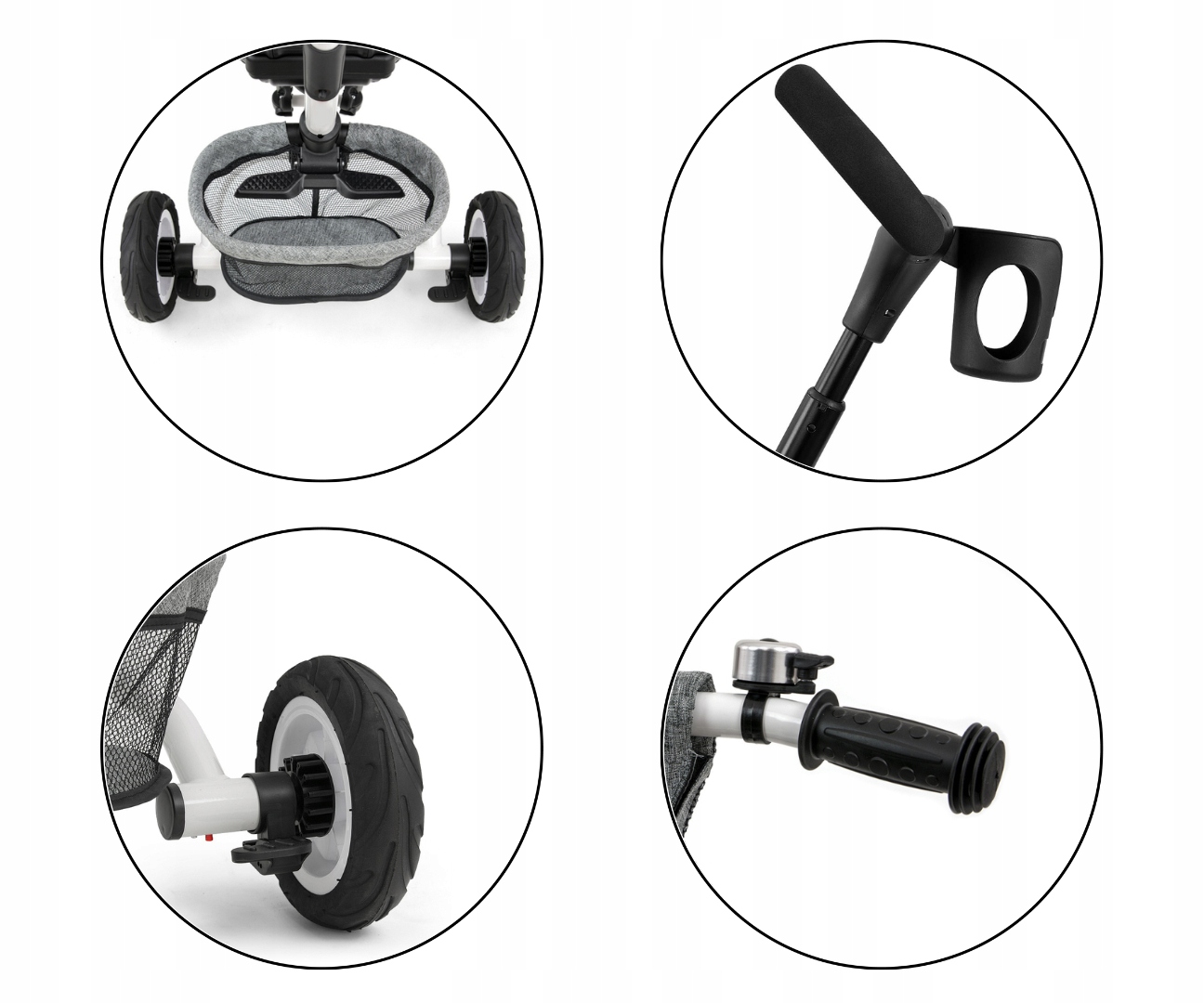 Контейнер для игрушек и съемный чехол на руле велосипеда позволит взять с собой все детские сокровища и необходимые аксессуары по уходу за малышом.