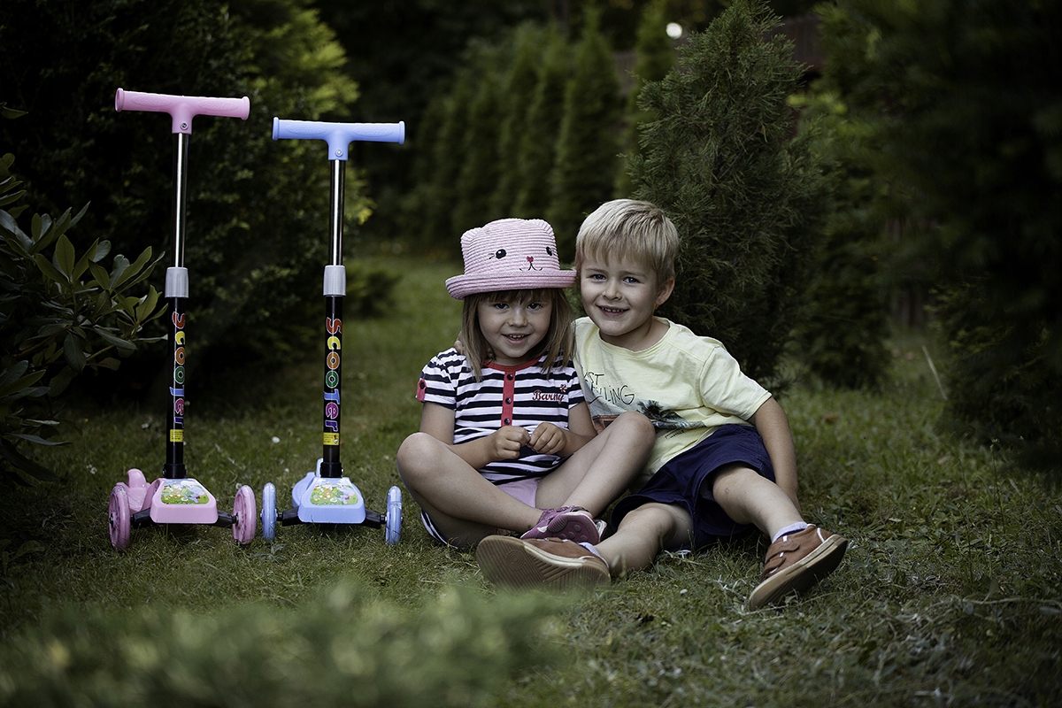 Самокат — отличная игрушка, которая заставляет ребенка двигаться и развивать чувство равновесия. и координация.