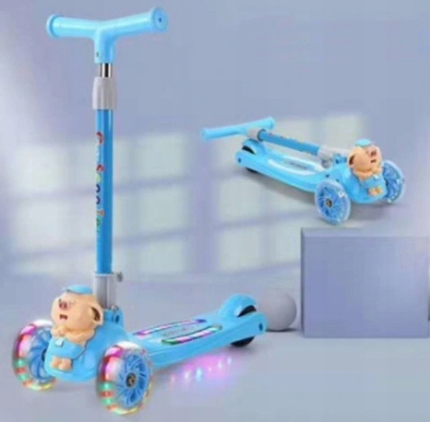 Прочная конструкция из устойчивых к повреждениям материалов, высокий максимальный вес пользователя, Регулируемый руль, светодиодные колеса и интересный дизайн делают самокат прекрасным подарком для каждого ребенка. Свинья в передней части самоката вызовет желание каждого ребенка использовать его при любой возможности.