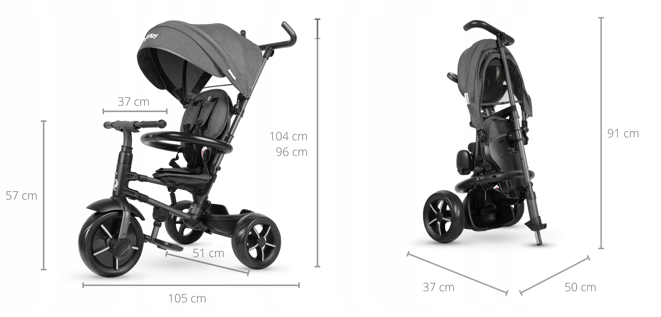 - Размеры сложенного изделия: 91 х 37 х 50 см.