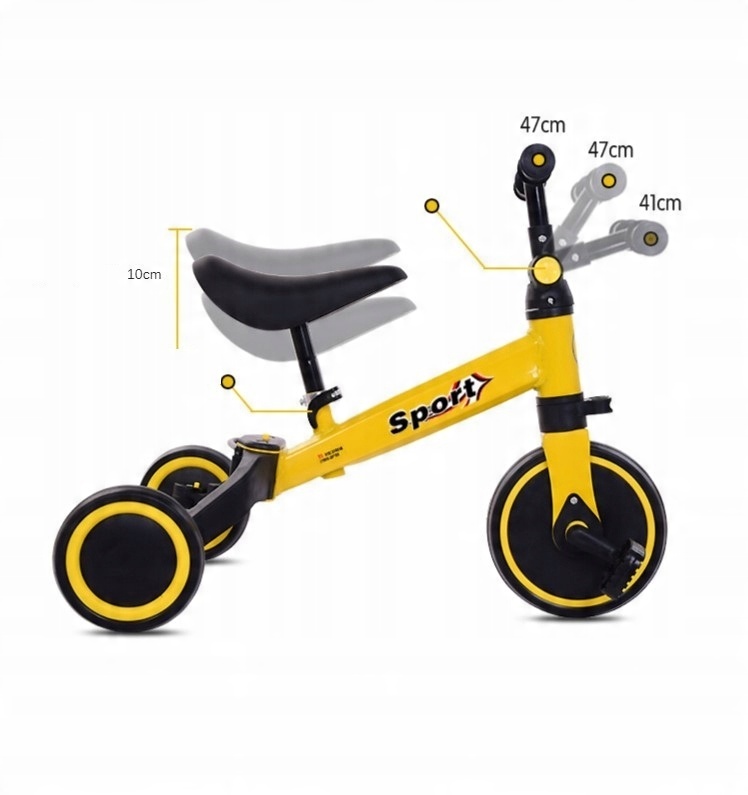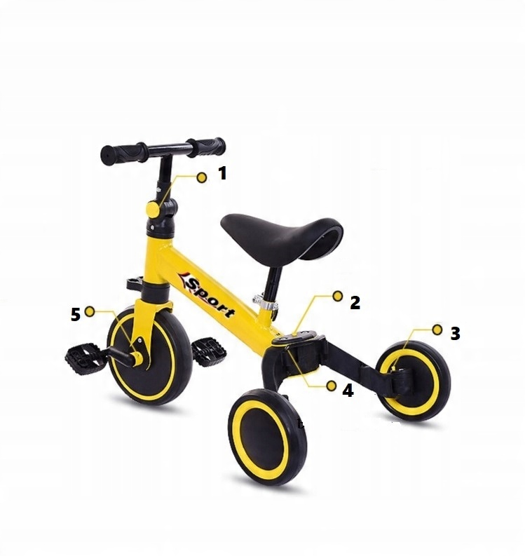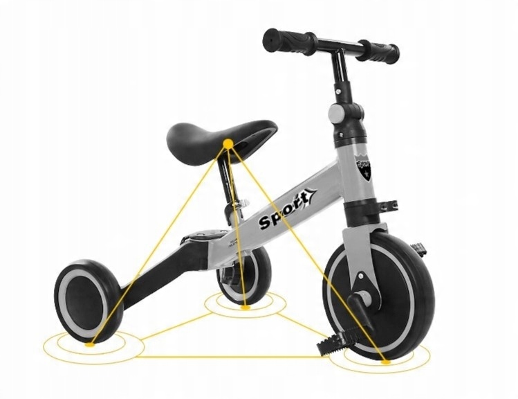 - Безопасное обучение езде – возможность переоборудования обычного беговела в трехколесный ездовой позволяет ребенку начать безопасное обучение езде на этом типе велосипеда. Мягкое седло и нескользящие ручки обеспечат комфортную игру на протяжении многих часов. Колеса велосипеда изготовлены из материала EVA, устойчивого к проколам, поэтому его можно использовать как дома, так и на прогулках.