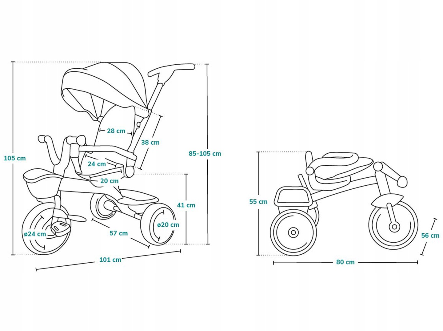 - Размеры в сложенном виде: 80 х 56 х 55 см.