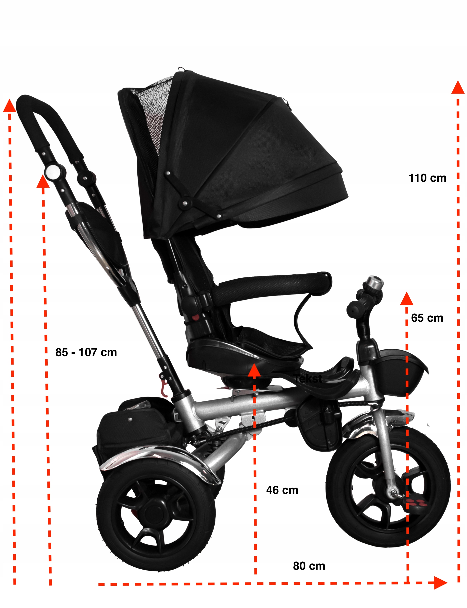 - большие колеса (ширина х диаметр) - передние 6,5 см х 30 см, задние 5,5 см х 26 см.