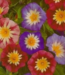 Растения с чашевидными цветками белого, розового и синего цветов.