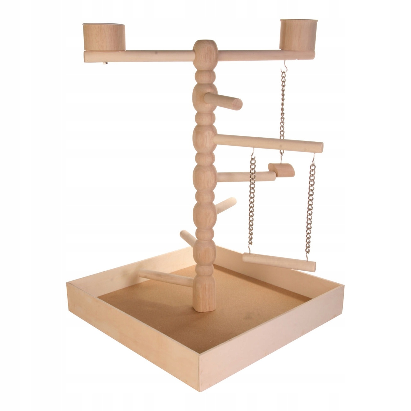 Playground - отличное развлечение для птиц, сделанное из высококачественного дерева. Содержит две емкостные миски с емкостью 40 и 50 мл. Мы заботимся о здоровье наших фаворитов, поэтому мы используем виды древесины только без смолы и не -токсичных клеев.