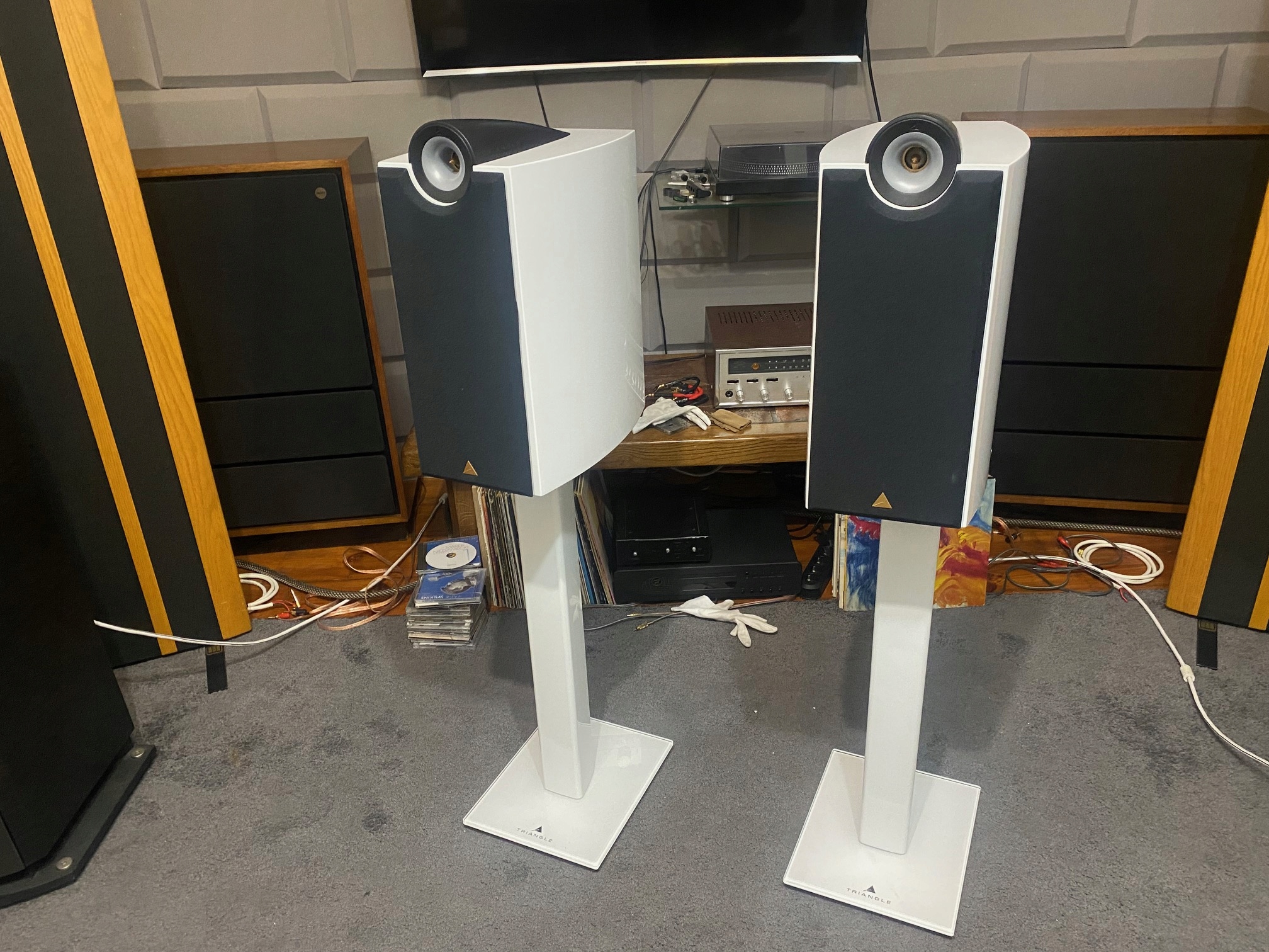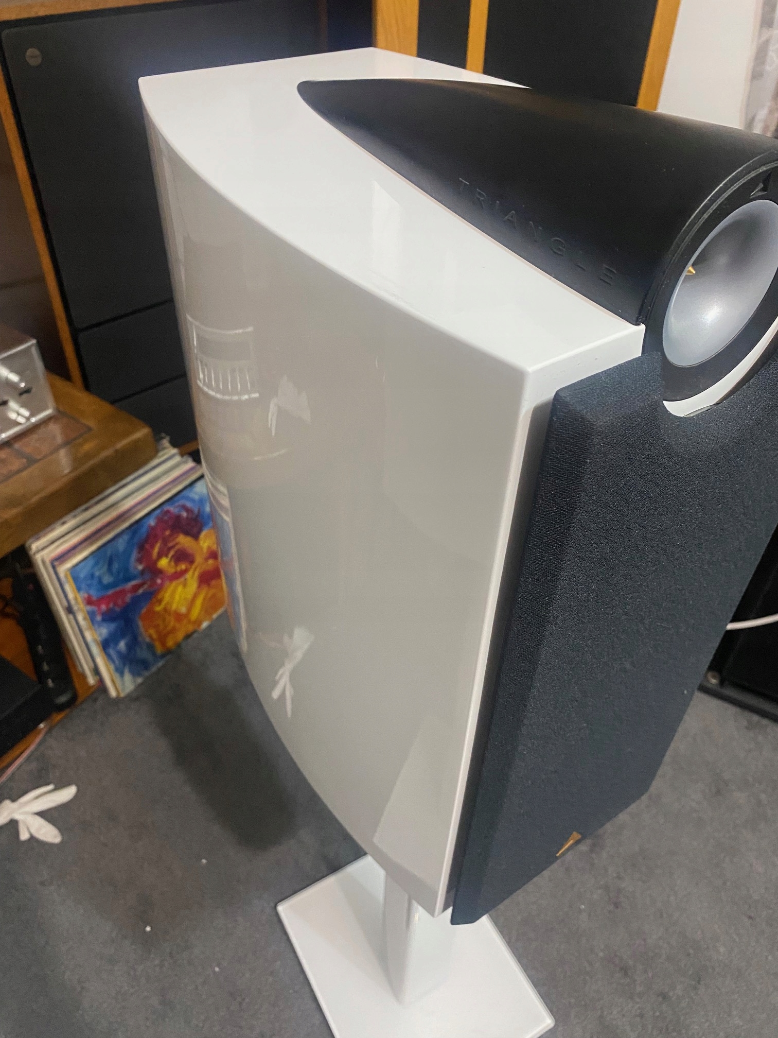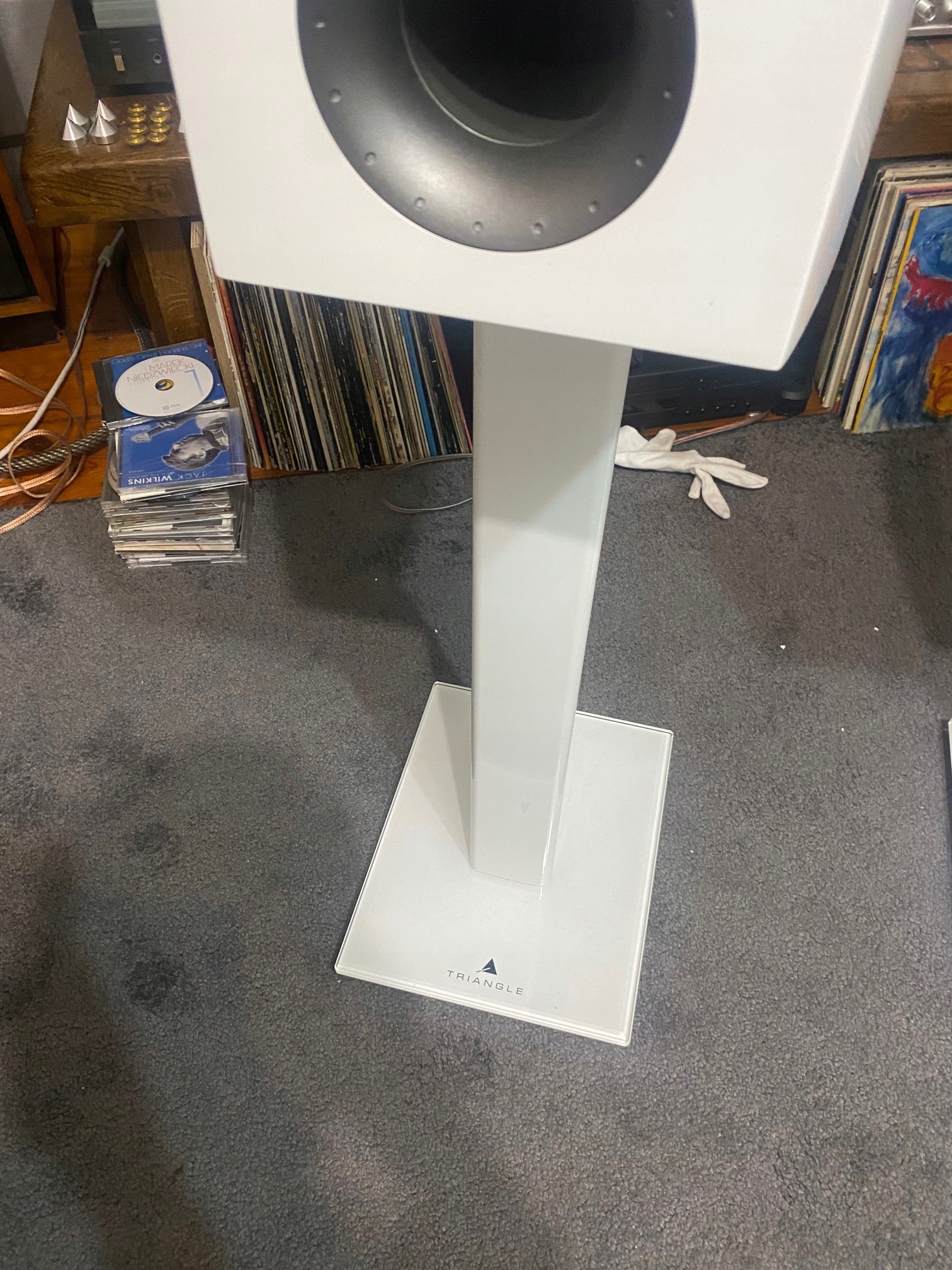 Тема продажи - пара столбцов: Трио Трио Генезе с выделенными треугольными стойками, белая финиша для фортепиано