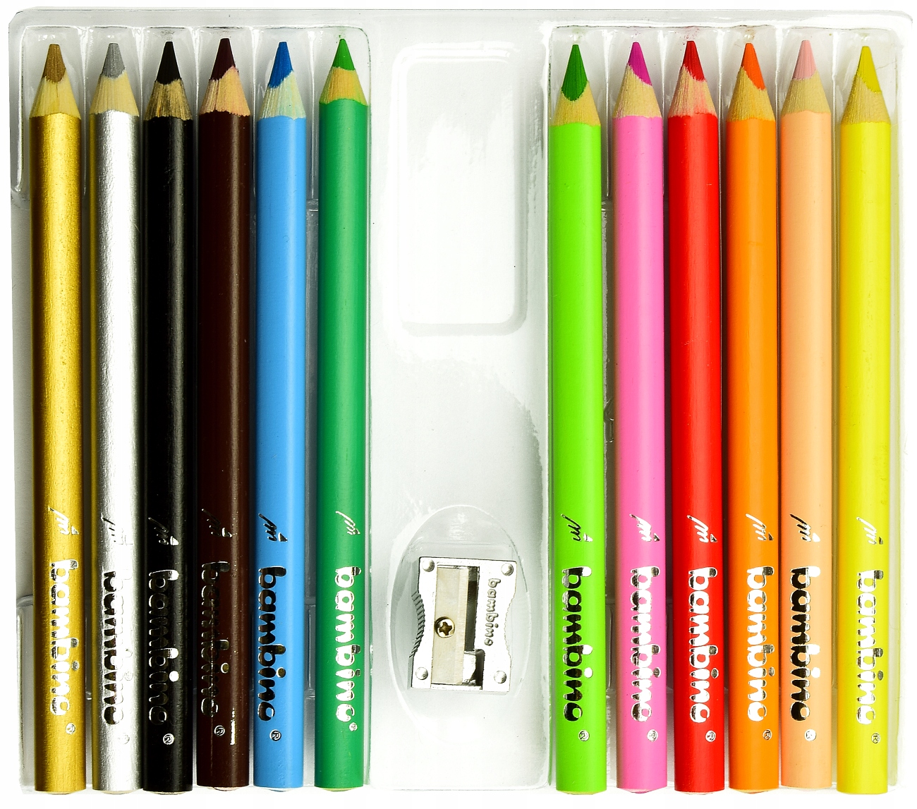 ТРИКУТНІ ОЛІВЦІ BAMBINO 12 КОЛЬОРІВ + ТОЧКА