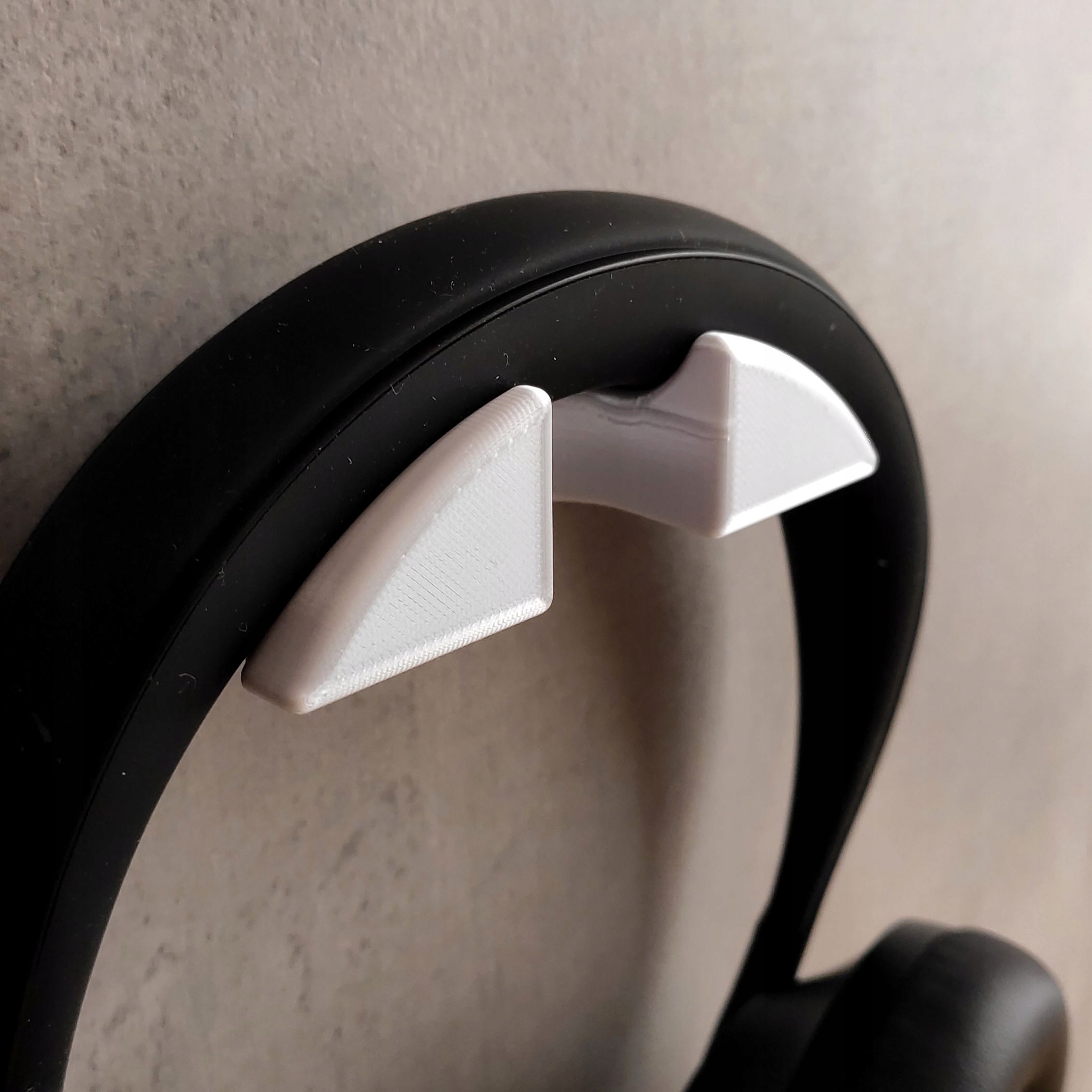Я решил что-то с этим сделать и разработал посвященный им держатель. Я хотел, чтобы его можно было прикрепить к стене, прикрутить к полке или приклеить к холодильнику. Я знал, что он должен быть как можно меньше, чтобы не был заметен, и идеально подходить, чтобы губка на повязке не деформировалась. В нем также должно быть отверстие, чтобы наушники можно было снять одним пальцем.