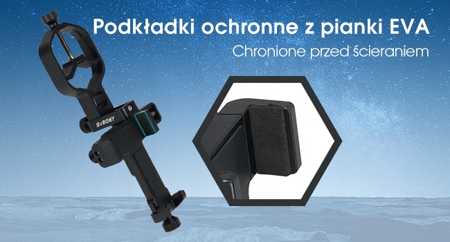 - Подушечки из ЭВА; держатель окуляра и зажим для мобильного телефона имеют защитные накладки; предотвращает повреждение телефона и окуляра.