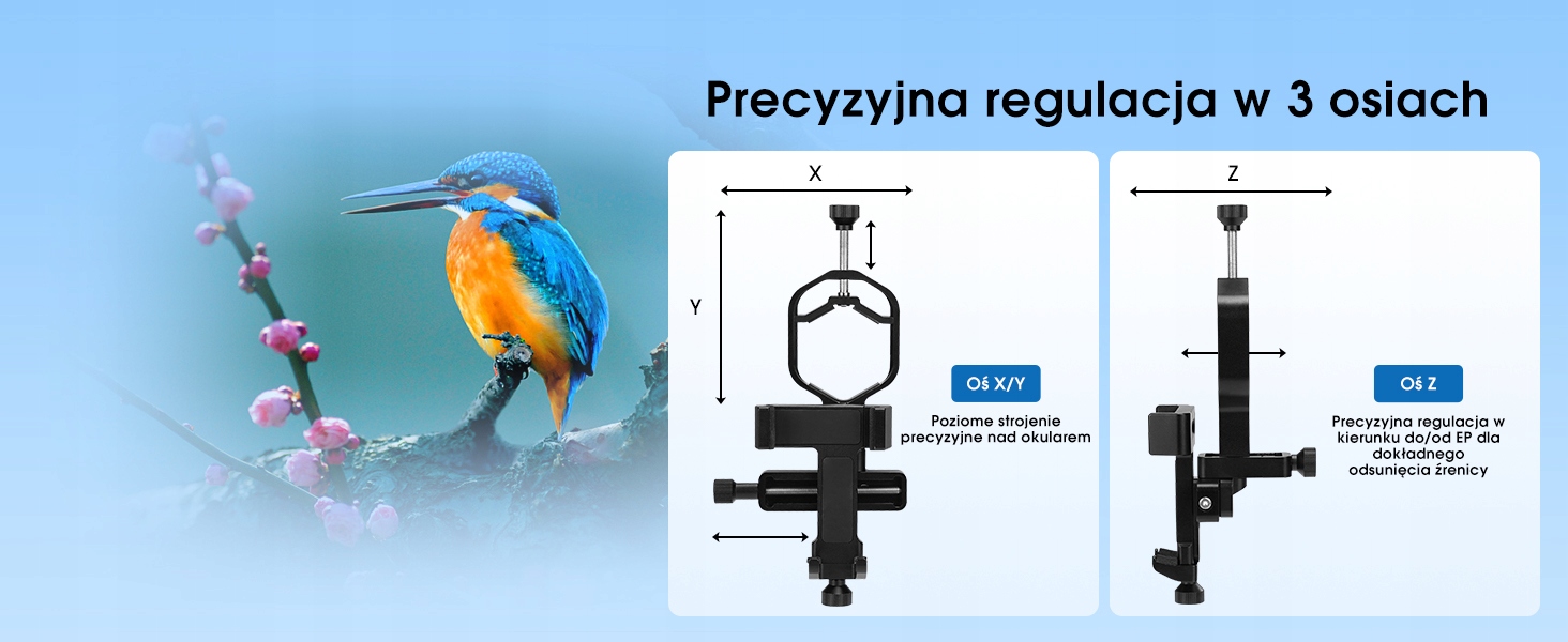 - Высокая точность настройки; Адаптер мобильного телефона к телескопу предназначен для точной регулировки; легкодоступные ручки точной регулировки XYZ обеспечивают стабильную и точную регулировку.