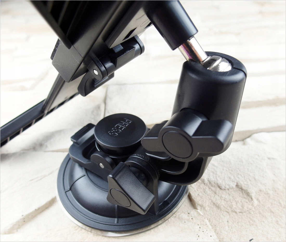 Обратите внимание, что присоска, которая крепит держатель к стеклу, большая. Его диаметр почти 10 см, поэтому оно надежно удерживает стекло – даже если сильно потянуть рукой, не оторвешь; тем более, что он не упадет сам по себе во время вождения.