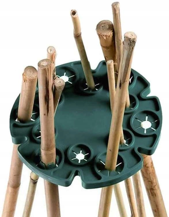 Держатель предназначен для бамбуковых или других шестов. Благодаря этому мы можем добиться полной устойчивости наших овощей/плетистых цветов. В держателе имеется 12 отверстий для шестов, которые нужно просто нажать, привязывать не нужно. Изготовлены из прочного пластика, поэтому прослужат несколько сезонов.