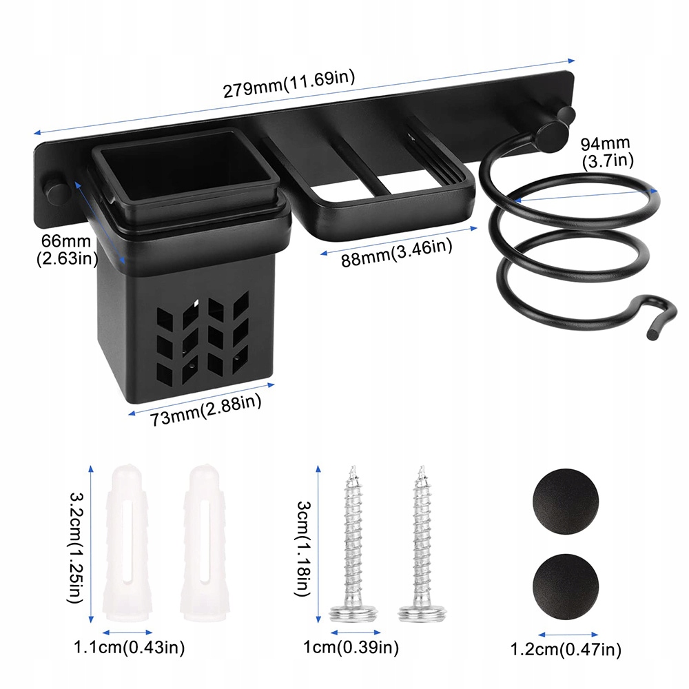 Настенный держатель для фена позволяет полностью использовать пространство и вместить небольшую повседневную косметику. Настенный держатель для фена изготовлен из высококачественного алюминия, прочного и устойчивого к выцветанию. Держит фен, выпрямитель и другие аксессуары для укладки волос на месте, сохраняя порядок в ванной комнате.