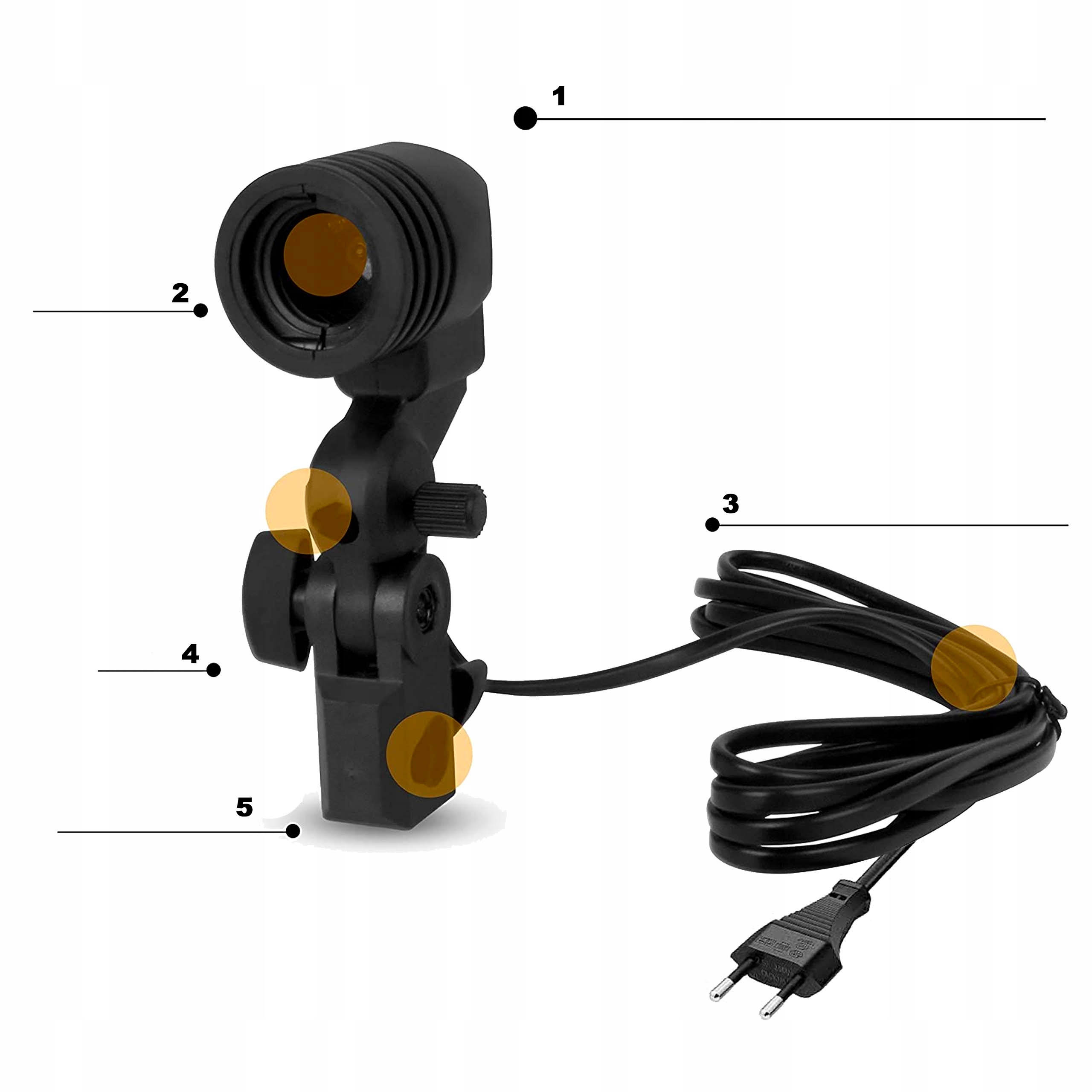 ✔️ УНИВЕРСАЛЬНОСТЬ - Аксессуар позволяет установить держатель на любую осветительную стойку, дополнительно закрепить фотокамеру. зонтик и любая лампочка с резьбой Е27