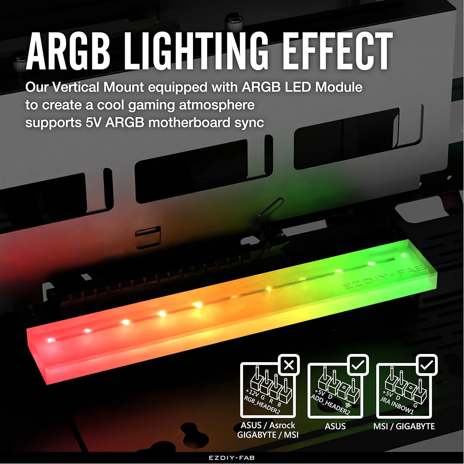 Вертикальный кронштейн видеокарты со светодиодной подсветкой ARGB, синхронизированная подсветка ARGB через материнскую плату (AURA, Mystic, Fusion):