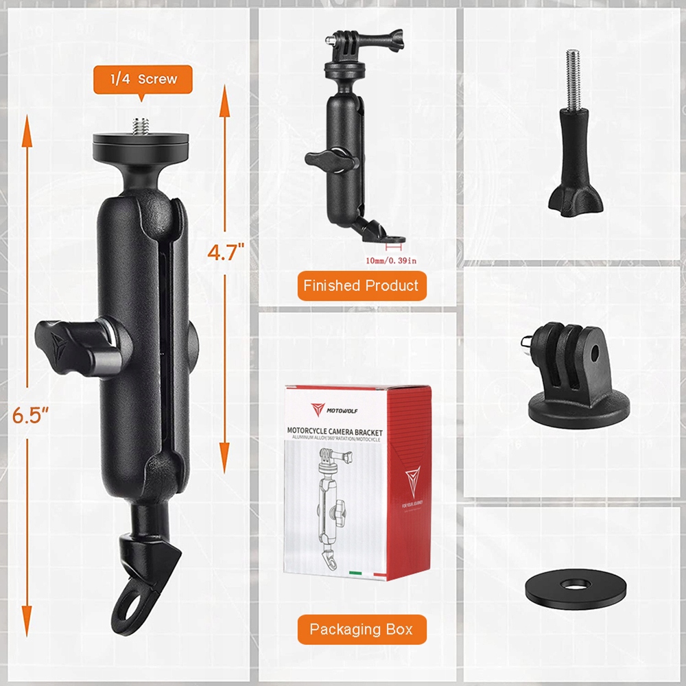 - 【Простая установка】: Чтобы установить крепление камеры GoPro, просто снимите зеркало заднего вида, установите крепление и затяните его. Это крепление для спортивной камеры отличается стабильной и безопасной установкой, а его угол можно легко регулировать и надежно фиксировать в соответствии с вашими потребностями.