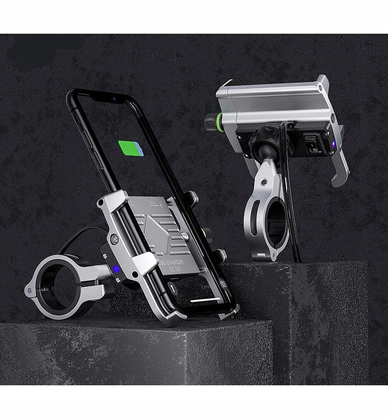 Мотоциклетный держатель eXtremestyle R10 с зарядным устройством для телефона, серебристый металл