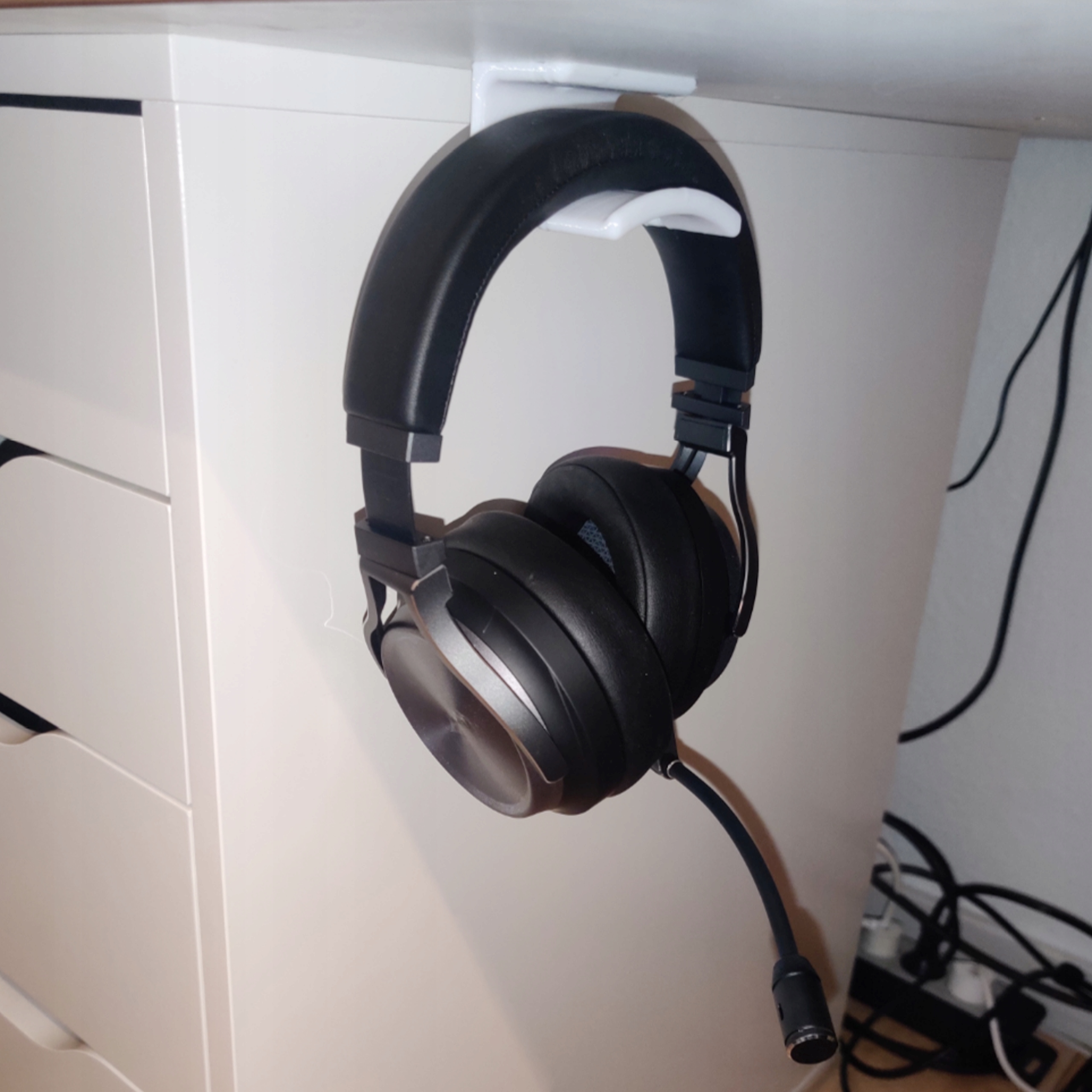 Идеальное крепление, позволяющее повесить наушники, например, под столом, чтобы наушники всегда были на своем месте.