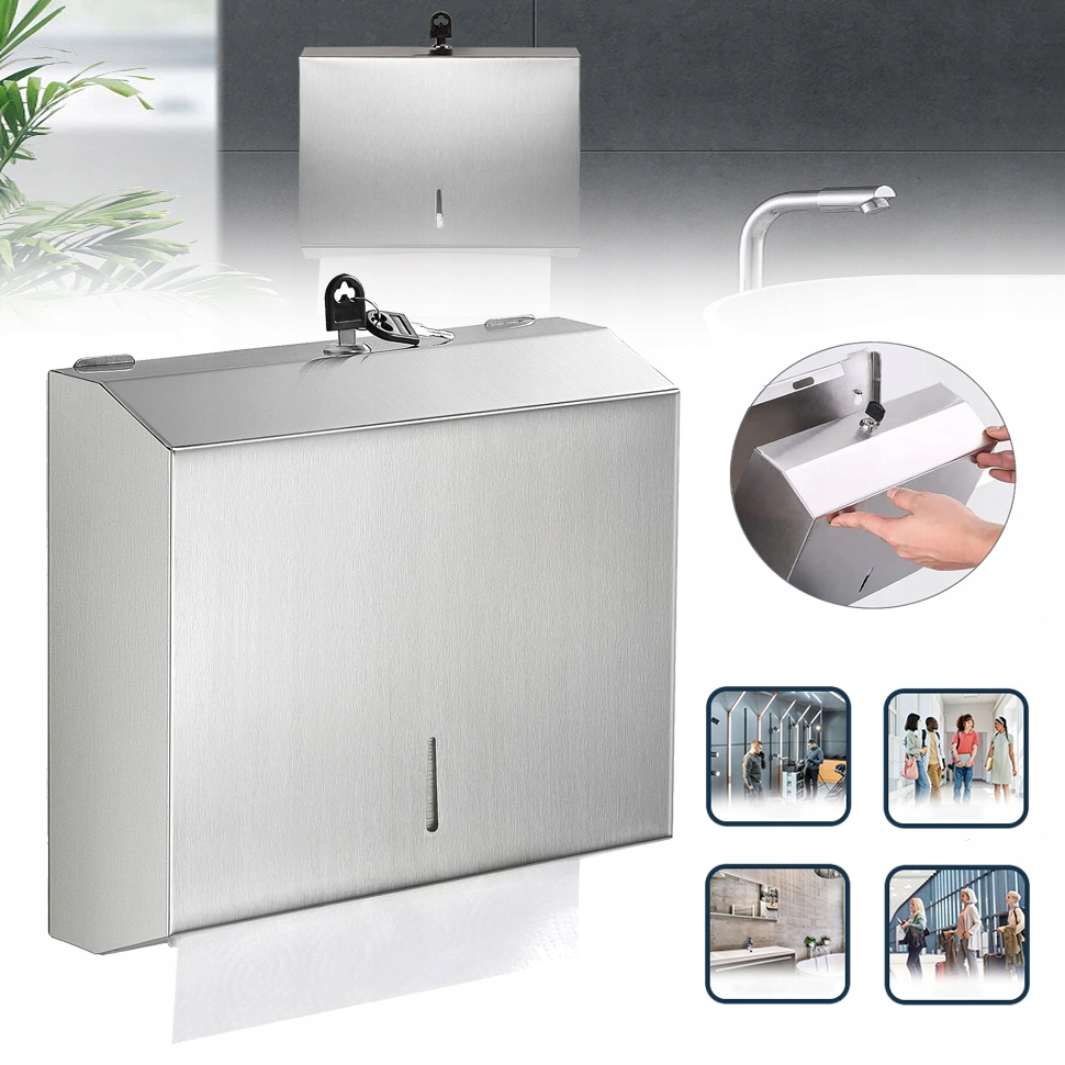 -Чтобы пополнить дозатор бумажных полотенец, просто разблокируйте его одним из двух прилагаемых ключей, откройте и наполните бумагой.