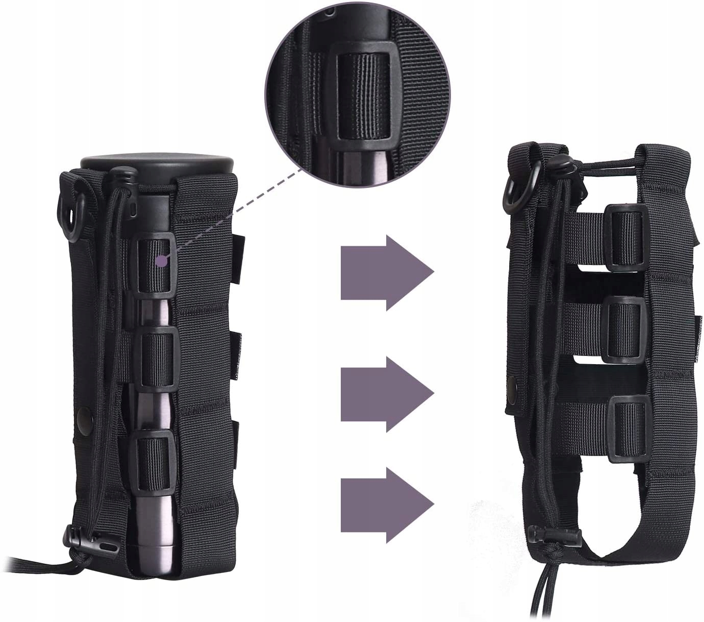 Универсальный держатель/чехол для бутылки, термоса или бутылки с водой – идеальный гаджет для людей, ценящих комфорт в сложных и требовательных условиях, на тропах или в обычных походах. Благодаря ремешку MOLLE его можно легко прикрепить к рюкзаку, сумке или ремню. Специальная конструкция позволит легко и удобно без дискомфорта транспортировать бутылки с водой.