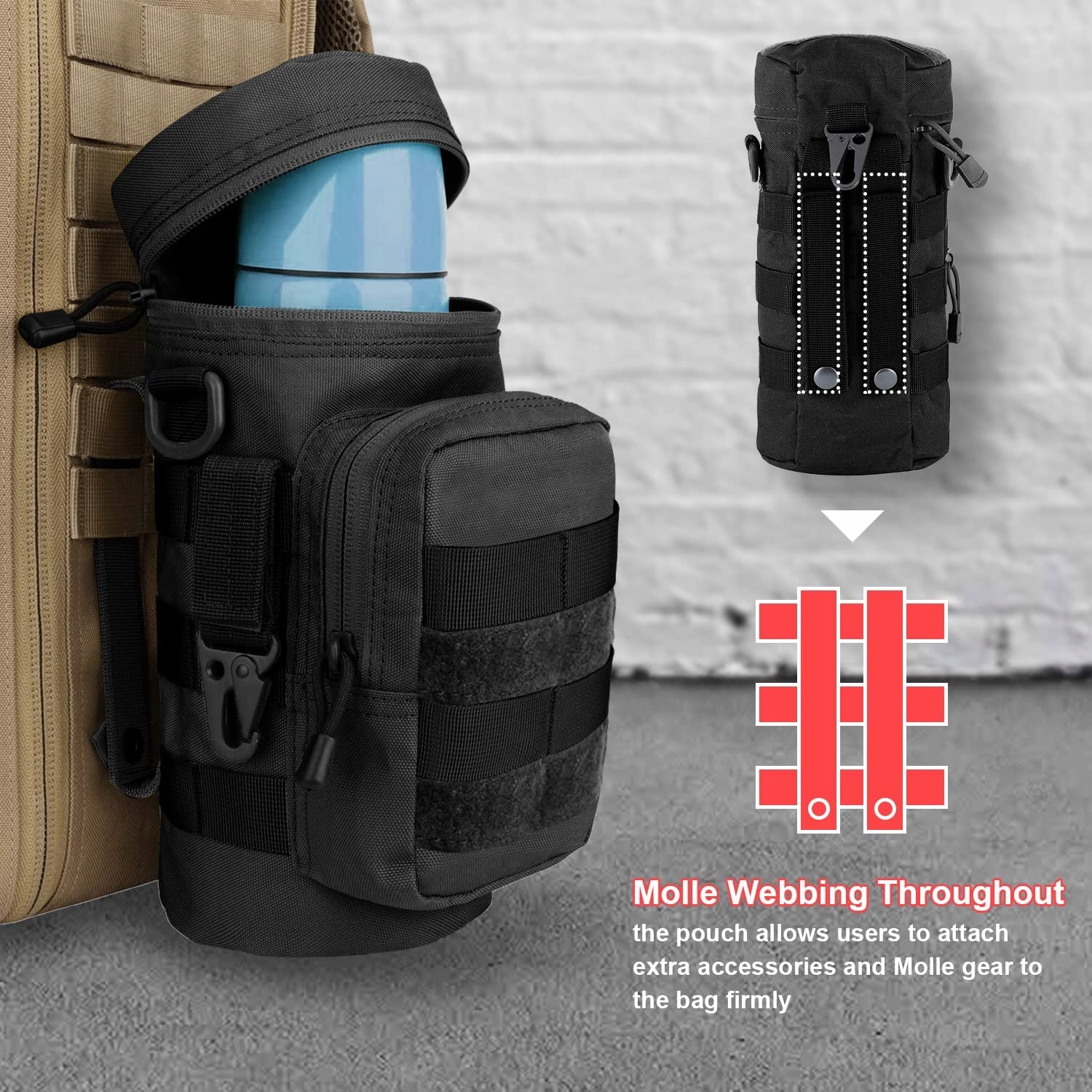 【Множественное хранение】Большой карман на молнии подходит для спортивной бутылки, бутылки с водой, бутылки с напитком или термоса, небольшой карман на молнии спереди для тактического хранения, походов, кемпинга, личных вещей и многого другого. Чехол оснащен высококачественной застежкой-молнией, которую легко открывать и закрывать.