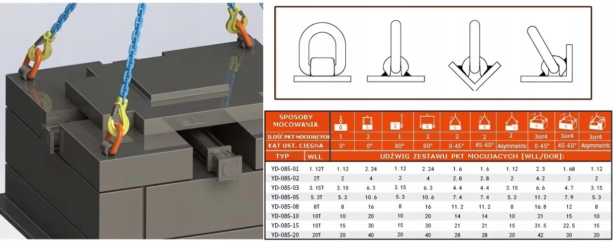 КОНСТРУКЦИЯ: Сварочный держатель типа D-ring после сварки обеспечивает свободное вращение на 180 градусов вокруг базовой оси, сохраняя при этом равномерную нагрузку. Соединение ручки с базовым элементом сваркой. Ручка оснащена пружиной, позволяющей удерживать ухо в любом положении, при этом пружина, расположенная между ухом и элементом крепления, ограничивает шум, вызываемый вибрациями. Ручка с порошковым покрытием красного или желтого цвета (цвет зависит от поставки), изготовлена из легированной стали методом штамповки. Доступно в версиях DOR: 1.12t; 2,0 т; 3,15 т; 5,3т; 8,0 т; 10,0т; 15,0 т.