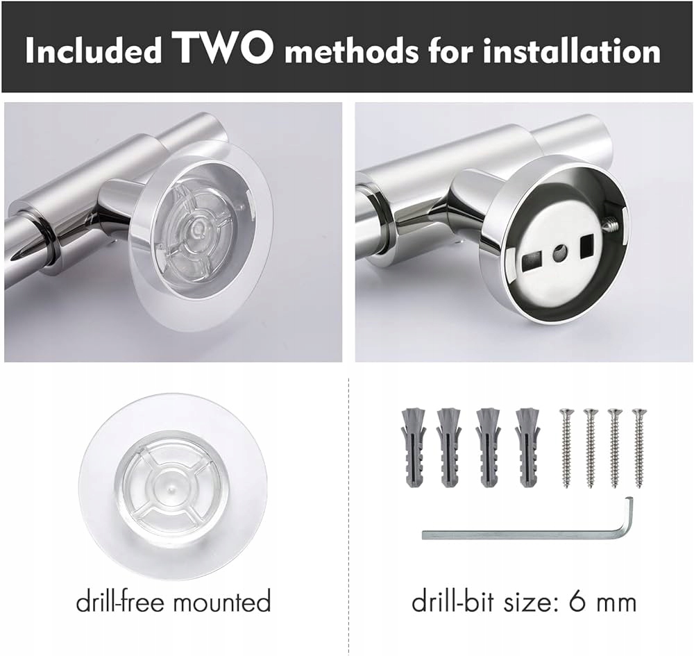 Установка без сверления: душевая штанга KES оснащена прочным клеем. Душевую штангу можно легко установить, не сверля отверстий и не повреждая поверхность стены. Совет: Установка без сверления подходит для плоских и гладких поверхностей без пыли и воды, таких как плитка, стекло и металл. Не используйте этот продукт на тканях, обоях или неровных и мягких поверхностях. Пожалуйста, подождите 12 часов перед использованием.