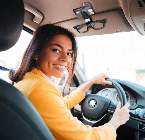 - Держатель для очков можно надежно прикрепить к солнцезащитный козырек, не закрывая обзор водителю.